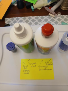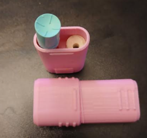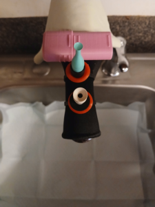 Clean the pink container (inside and out) and plunger with a 70% isopropyl alcohol pad.